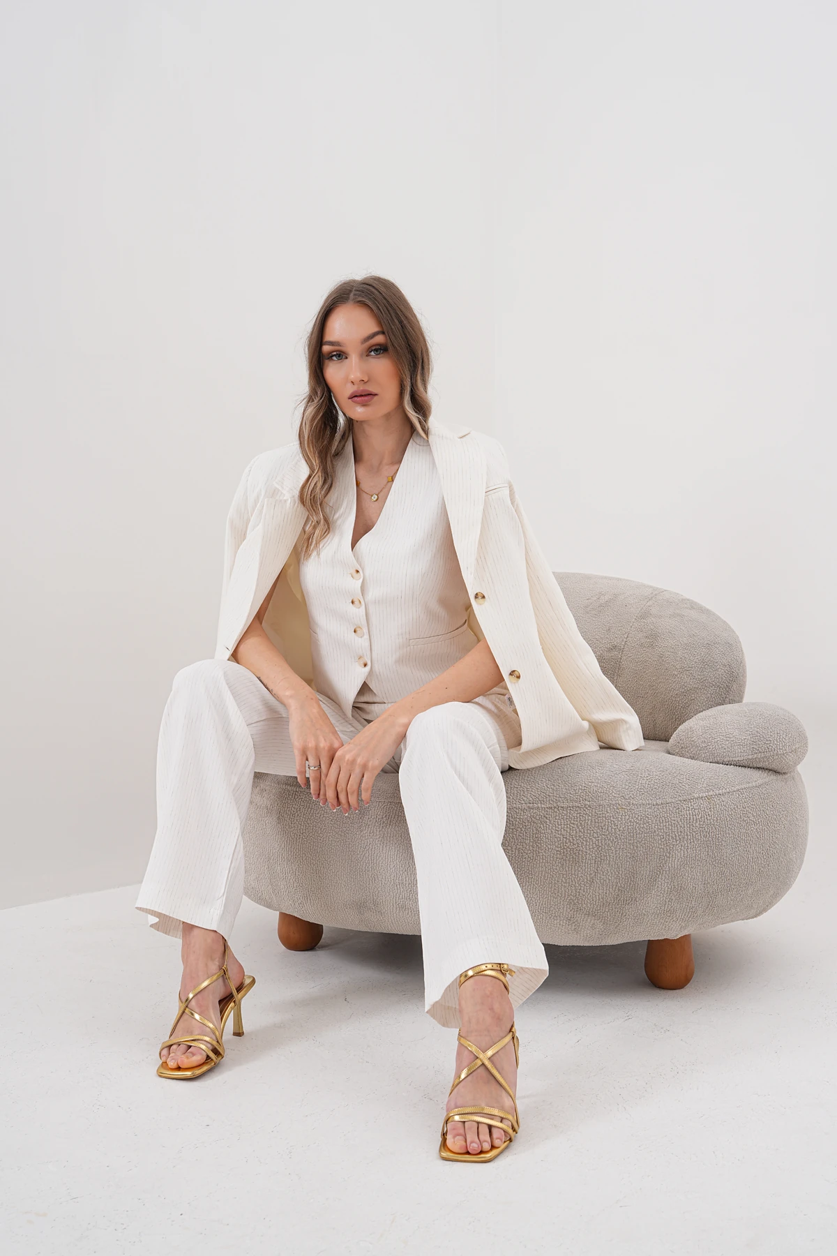 İpekpath Isabella Çizgili Ekru Yelek Pantolon Takım